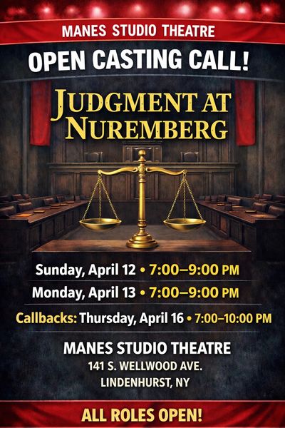 Judgment at Nuremberg contains mature themes and historical subject matter related to World War II and the Holocaust. Actors should be comfortable engaging with this material in a respectful and professional environment.